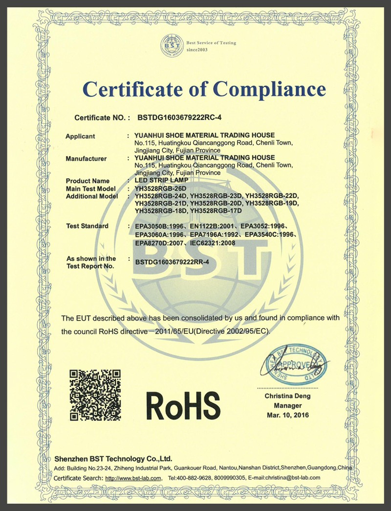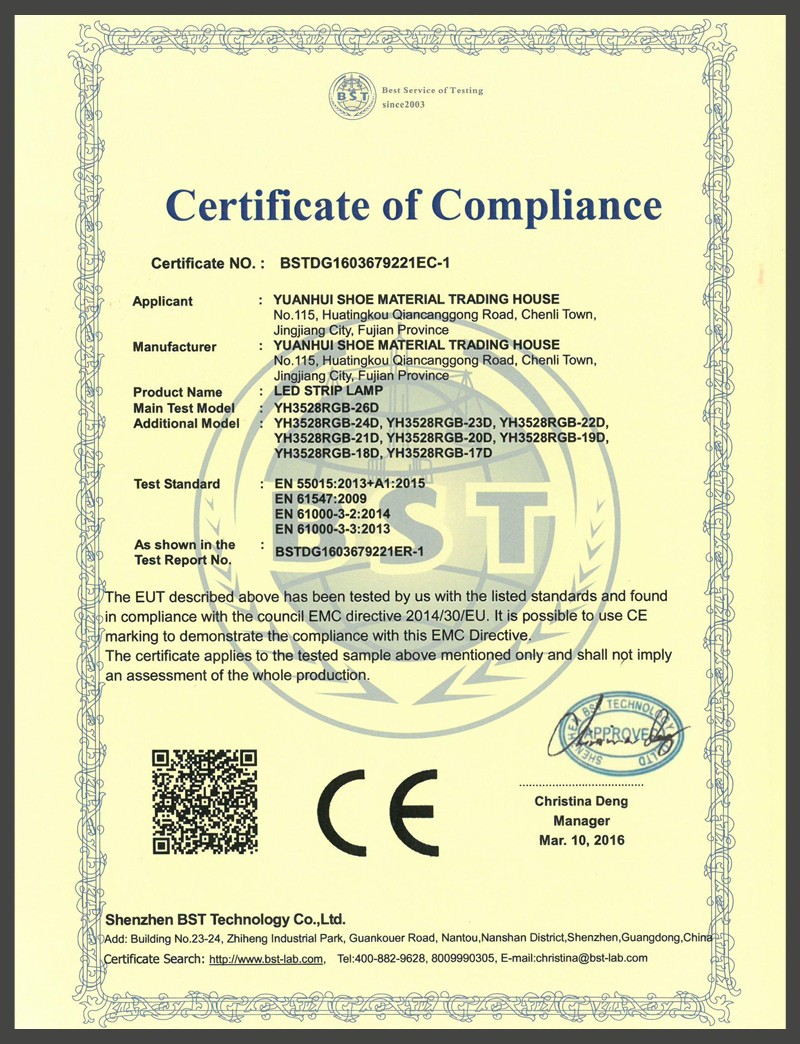 SO9001 quality system certification, ISO14001 environmental system certification and regional product certification